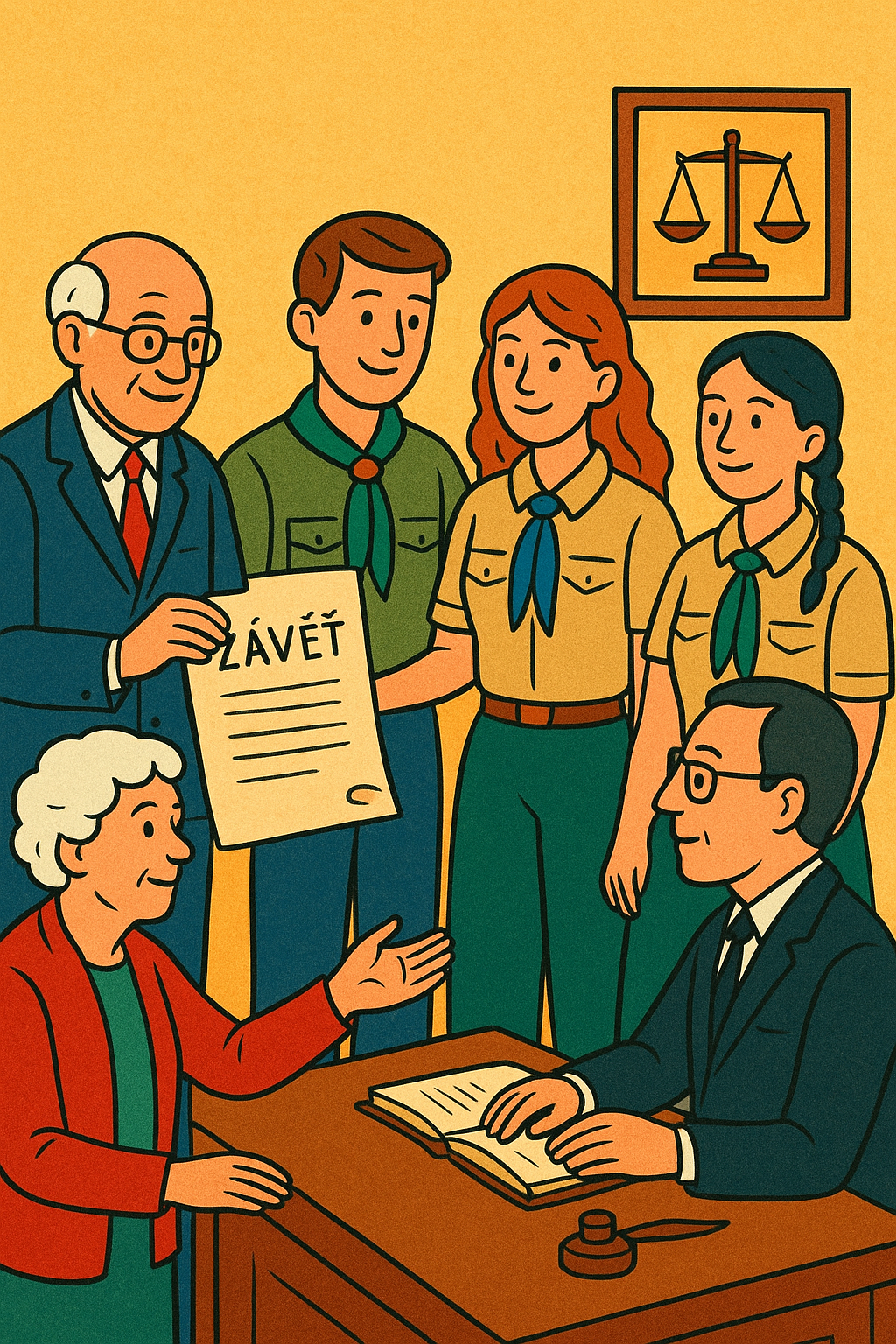 Pokud byste si přáli, můžeme vám poskytnout kontaktní údaje na notáře, který vám s vaší poslední vůlí ochotně pomůže. Tato služba je zcela důvěrná a zdarma pro všechny, kdo ve své závěti budou pamatovat také na vaz Skautů a skautek ČR, 15. Eko skautský chlapecký oddíl Drosera-Žďár nad Sázavou.