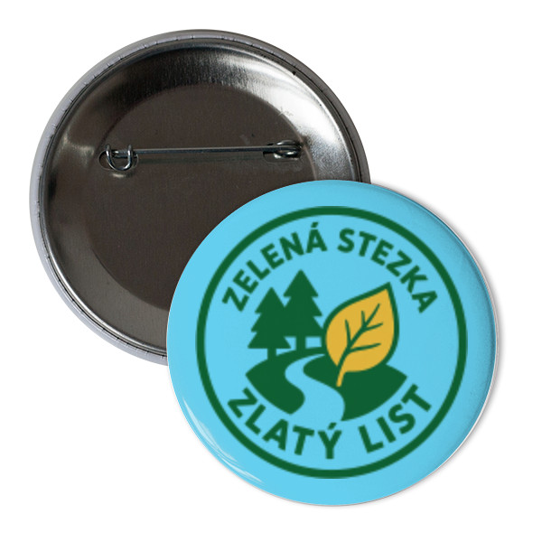Kulatý odznak se znakem ekologické soutěže Zelená-Stezka-Zlatý List