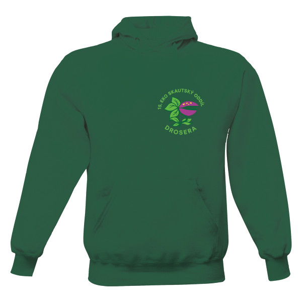Zelená mikina se znakem 15. Eko skautského oddílu Drosera